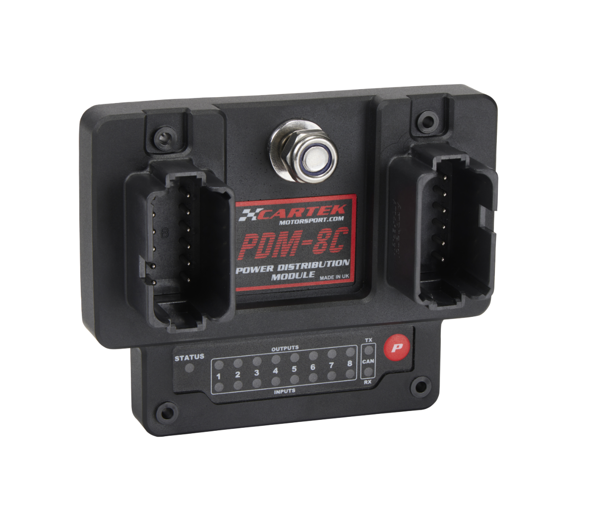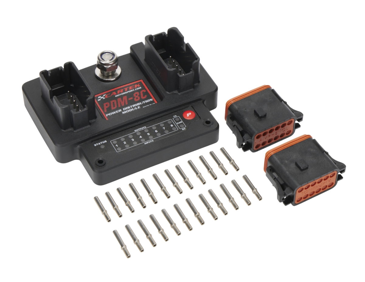 Das PDM-08C verfügt über acht Leistungsausgänge sowie CAN-Bus-Anschluss zur Übertragung von Diagnosedaten wie Ausgangsstatus, Spannung, Stromstärke, Konfigurationseinstellungen usw. Die Ausgänge können auch über den CAN-Bus angesteuert werden.