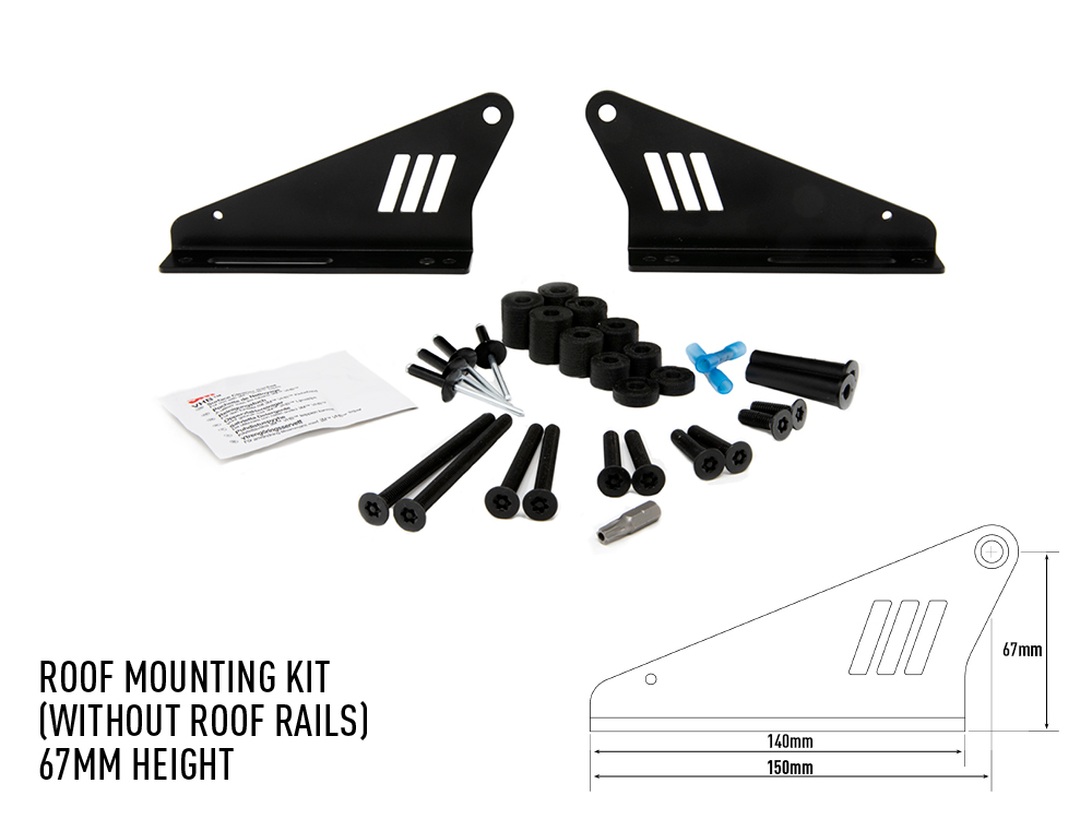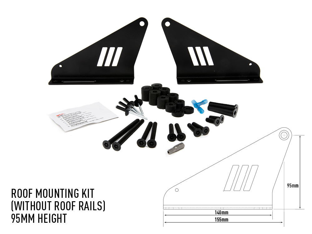 Die Halterungen sind in zwei Versionen und verschiedenen Höhen erhältlich. Somit können Sie zwischen der Version für Dachschienen oder zur direkten Dachmonatge wählen. Je nach verwendetem Scheinwerfer und Dach, sind die Halterungen auch in jeweils drei unterschiedlichen Höhen lieferbar.