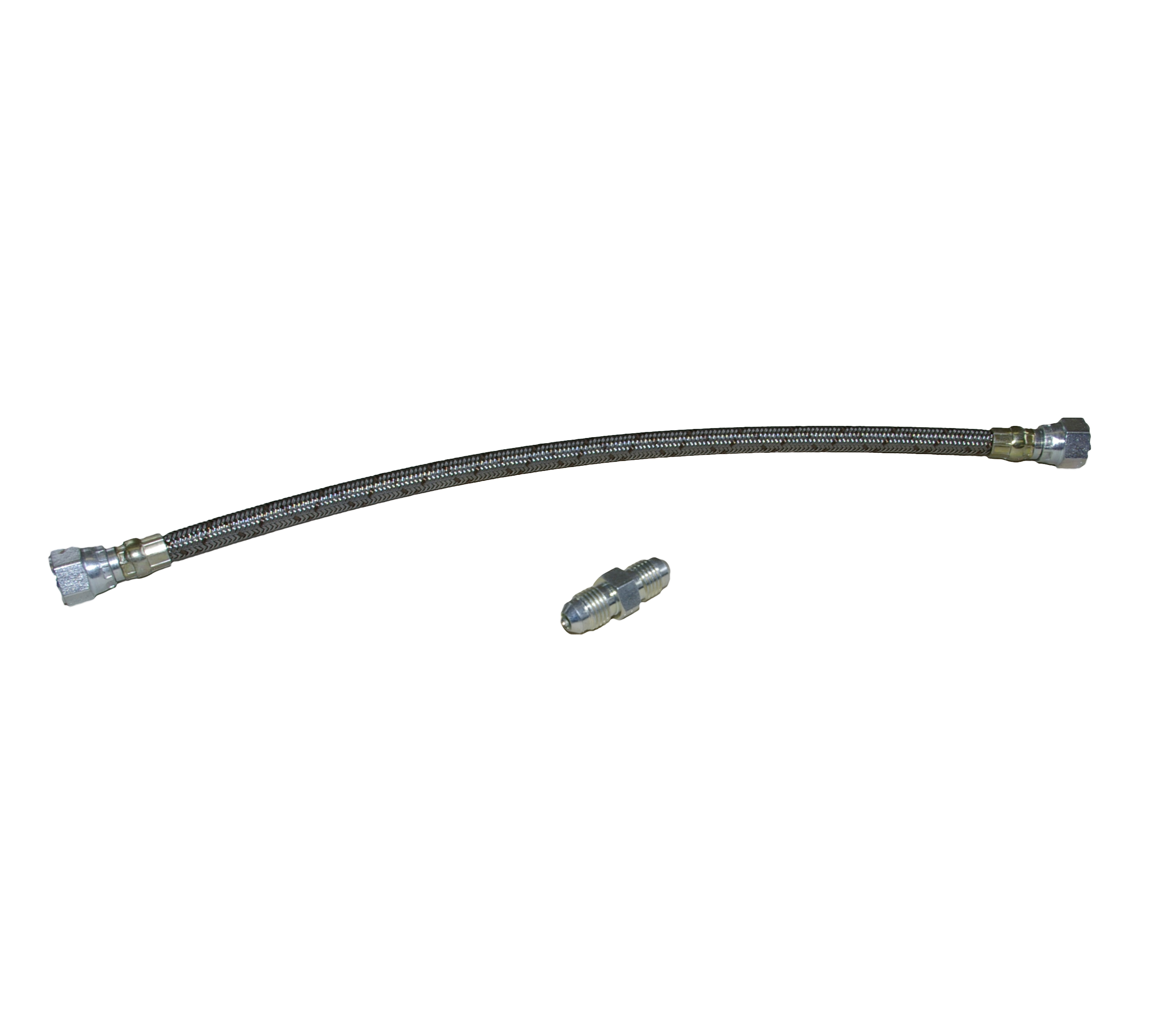 Edelststahl ummantelte Teflonleitung mit verpressten Anschlüssen mit 7/16"UNF Gewinde (Dash AN-4) zum Verbinden von Bremszylinder und Vorratsbehälter.