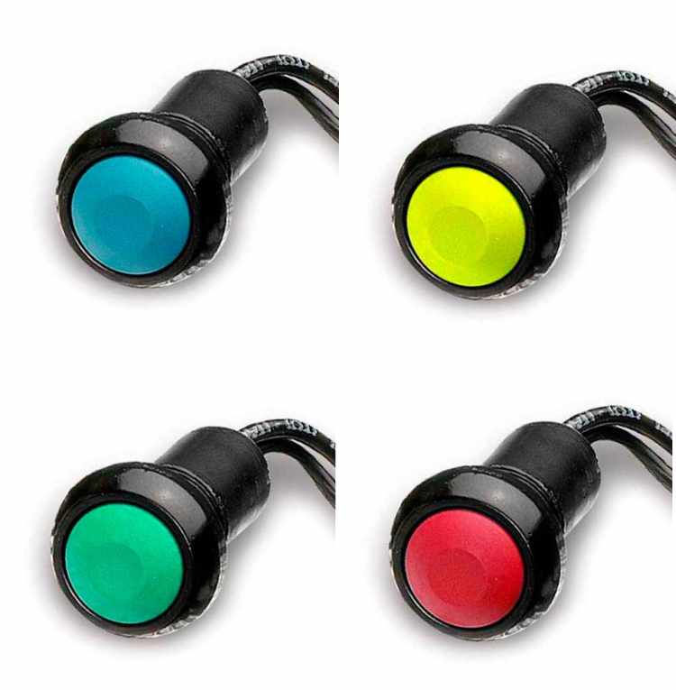 Diese Taster sind bis 1 Amp belastbar und daher gut geeignet für den Einbau im Lenkrad oder im Armaturenbrett. Die Taster sind federbelastet und rasten nicht ein.
