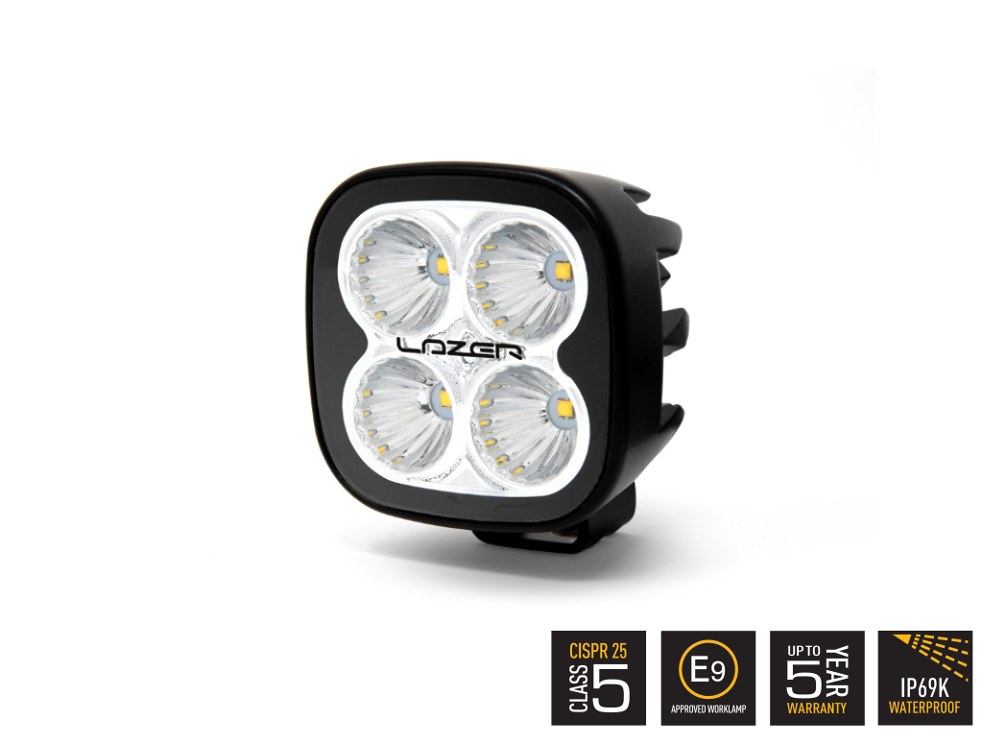 Mit einem Außenmaß von 80mm x 80mm und einem Spannungsbereich zwischen 9-32V, liefern die vier 6 Watt LEDs einen Lichtstrom von 3016lm. Der Streuwinkel wurde mit 78° an die Erfordernisse eines Arbeitslichts angepasst und die Farbtemperatur von 5000K garantiert ermündungsfreies Arbeiten