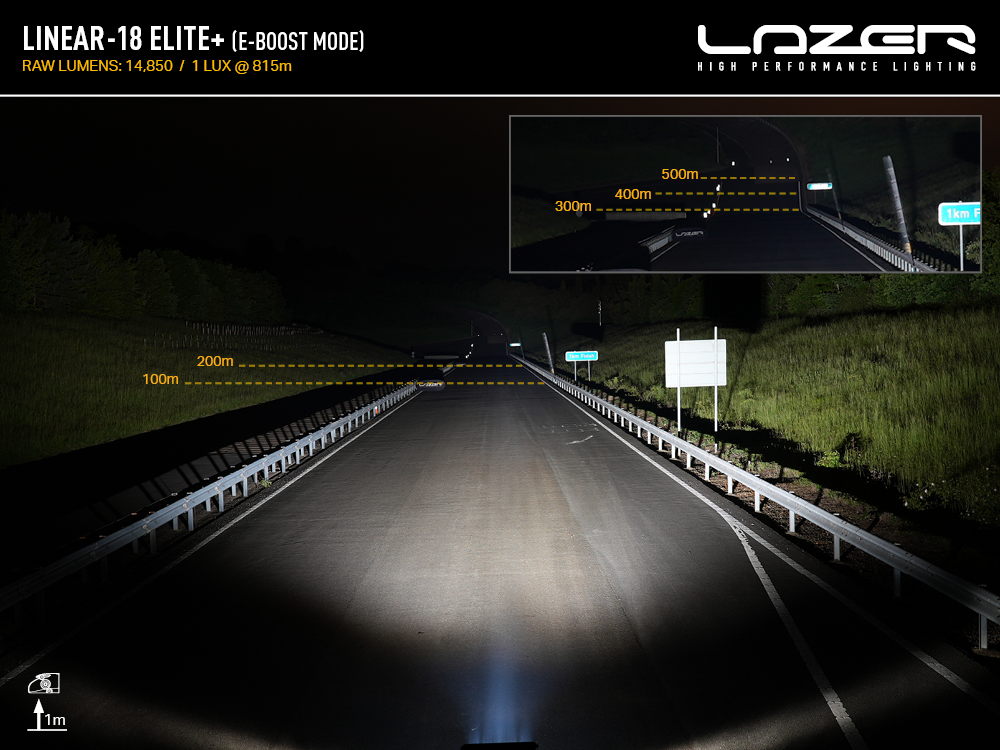 Trotz des flachen Aero-Designs des Linear-18 Elite+ besteht das Licht durch fortschrittliches elektronisches Design aus beeindruckenden 36 weißen LEDs und 18 gelben LEDs. Wenn das Licht im Boost-Modus betrieben wird, erzeugen die weißen LEDs 14.850 Rohlumen (10 % mehr als der aktuelle Linear-18 Elite). Beim Wechsel in den „Combo“-Modus erzeugen die weißen und gelben LEDs zusammen 21.000 Rohlumen, was für eine LED-Lichtleiste dieser Größe eine unglaubliche Lichtleistung darstellt. Der kombinierte Betrieb aller LEDs führt zu einem Stromverbrauch von 190 W und einer Stromaufnahme von 14 Ampere (bei 14 V). Um den Betrieb der Lampe und die Elektroinstallation zu unterstützen, ist ein mitgelieferter Verkabelungssatz mit Hochleistungs-Aptiv-Stecker im Lieferumfang enthalten.